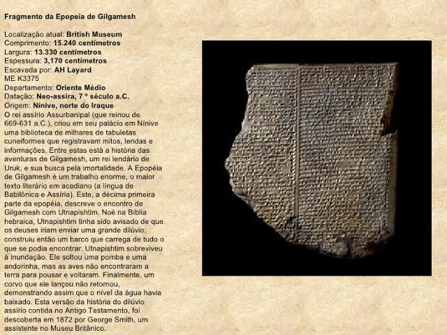 Entre os fragmentos de textos descobertos em 1853 pelo arqueólogo Hormuzd Rassan, encontram-se tabuletas com inscrições sobre a história do legendário rei Gilgamesh de Uruk.