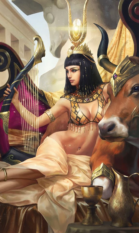 Hathor era a deusa do amor, da beleza, da música e da fertilidade. Representada como uma mulher com chifres de vaca e um disco solar entre eles, ela era vista como uma figura maternal que protegia os vivos e guiava os mortos no pós-vida. Hathor era frequentemente associada à alegria e à celebração.